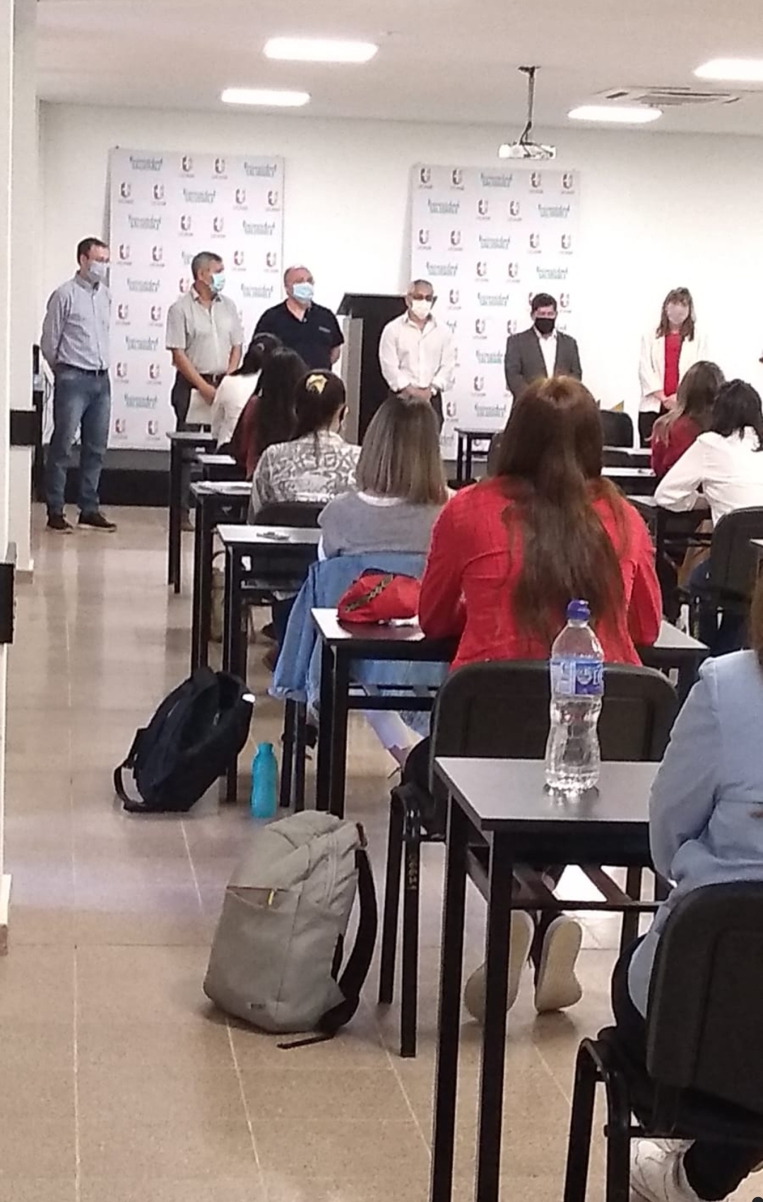 El Ministro de Salud Pública, Dr. Oscar Alarcón dio la bienvenida a los postulantes junto a la rectora de la UCAMI, Mgtr. Ana María Foth, al Subsecretario de Apoyo y Logística, Dr. Carlos Báez, al Director de Recursos Humanos, Dr. Javier Mattivi, al Director de Epidemiología, Dr. Jorge Gutiérrez y jefe de Residencias Médicas, Dr. Miguel Dibiassi.