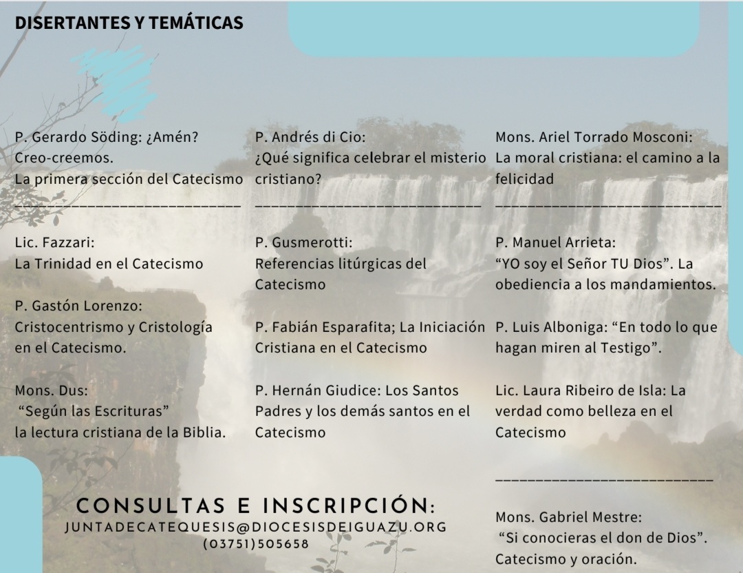 Con el aval de la Comisión Episcopal de Catequesis y Pastoral Bíblica, la Diócesis de Puerto Iguazú, será sede del Simposio de Teología y Catequesis los días 19, 20 y 21 de julio en el Santuario Diocesano y Casa de Ejercicios Espirituales Santa María del Yguazú.