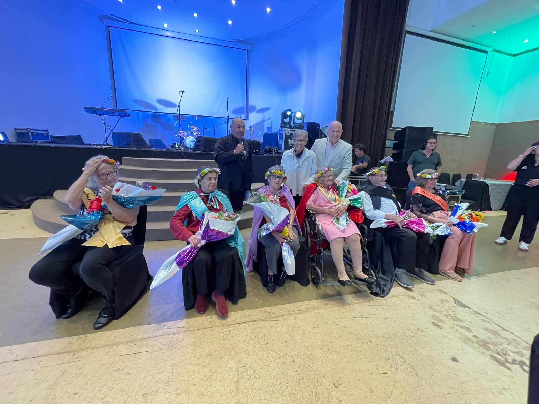 En el marco de los festejos por el 124° aniversario de Puerto Iguazú, se realizó un emotivo homenaje a los pioneros de la ciudad, donde fueron coronados como reina Francisca Almirón de Larramendi, de 102 años, y rey Benito Muzzolini Lorenzo, de 93. También fueron distinguidas Sara Paredes y Nidia Sánchez como princesas, mientras que Lidia Vera recibió el título de Miss Elegancia y Mónica Gautschi el de Miss Simpatía.