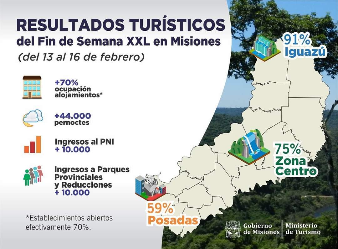 Al respecto, desde el Iguazú Turismo Ente Municipal (Iturem) manifestaron que «este fín de semana largo, feriado de carnaval, ha dejado resultados muy positivos respecto a la afluencia de turistas».