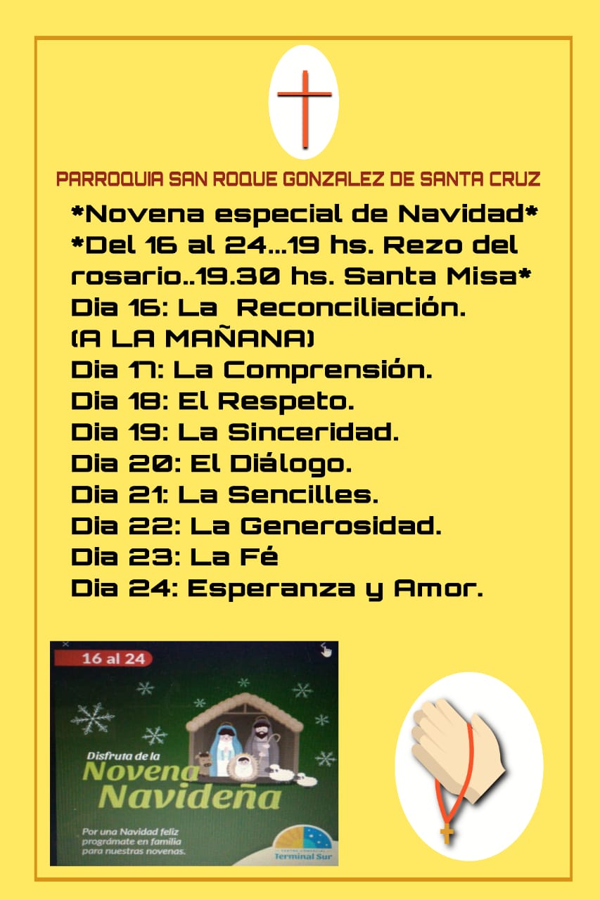 En la Parroquia San Roque González de Santa Cruz hoy se inició la novena con el rezo del Rosario a las 6:30 hs y a las 7:00 la Santa Misa -por única vez- ya que a las en el día de la fecha a las 18 hs se oficiará la Misa por los enfermos.