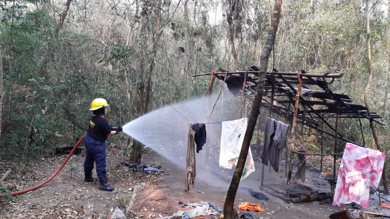 De inmediato se dirige hacia el lugar una dotación, y al llegar se encuentran que se trataba de una vivienda que no está habilitado para estar en ese lugar, que habia sido consumida por el fuego.
