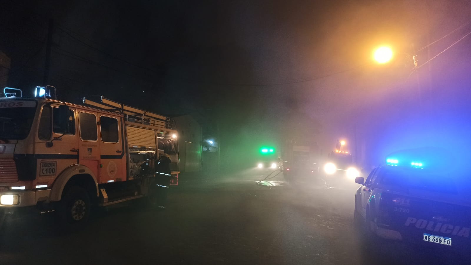 Rápidamente sale hacia el lugar la primera dotación, al llegar observan portones y puertas abiertas, y en el interior del depósito en el que había fuego, cosas varias (mesas , sillas todas de maderas y algunos electrodomésticos) aproximadamente 6×20 mts .