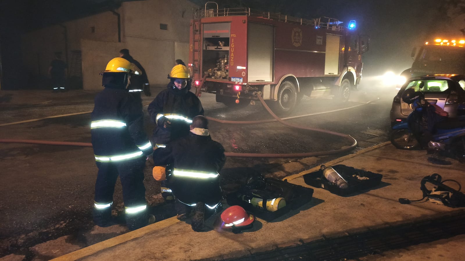 El día de hoy, martes 12 de octubre, siendo las 02:40 horas de la madrugada, la guardia de Bomberos Voluntario de Iguazú, recibe una denuncia de un Incendio de depósito en Zona Industrial.