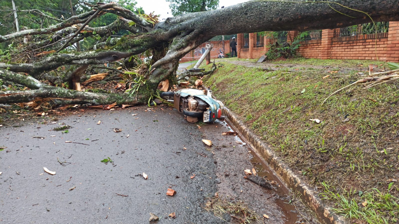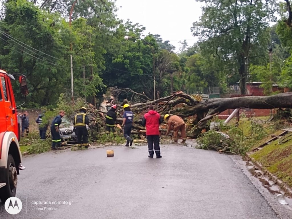 El día de hoy, sábado 2 de octubre, en horas de la mañana, los Bomberos Voluntarios de Iguazu reciben una denuncia de caída de árbol sobre un auto y motocicleta, con personas heridas, sobre la calle Alvar Nuñez, en Barrio Centro,