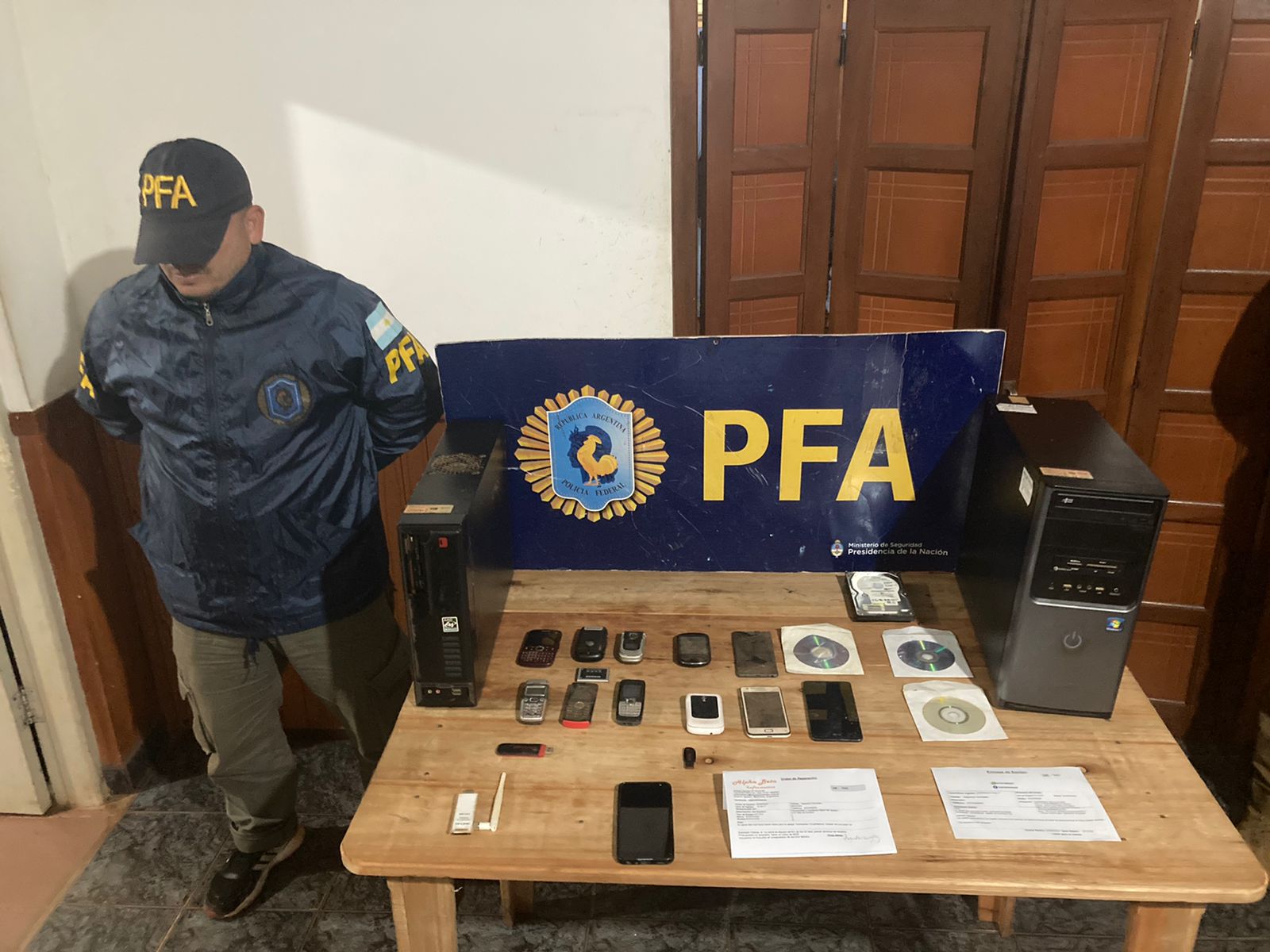 Así las cosas, mediante la intervención del juzgado de instrucción 3, de la mano del Dr. Martín Luis Brítez, a quien se brindó información precisa de la situación, relacionada con la posible actividad referida a pornografía infantil, inmediatamente sin escatimar detalle alguno ordeno la realización de los allanamientos, secuestro y detención del presunto involucrado ya con la anuencia del juez, los efectivos montaron un operativo durante toda la tarde del jueves, dirigiéndose hasta el barrio de villa alta donde allanaron dos domicilios encontrando en uno varios materiales informáticos PCS, Pendrives entre otros accesorios y más de diez teléfonos celulares, por otra parte en el otro domicilio se secuestraron más elementos informáticos, materiales probatorios estos, que según se pudo precisar van a ser analizados minuciosamente, finalizando el operativo con la detención del individuo involucrado en el hecho.