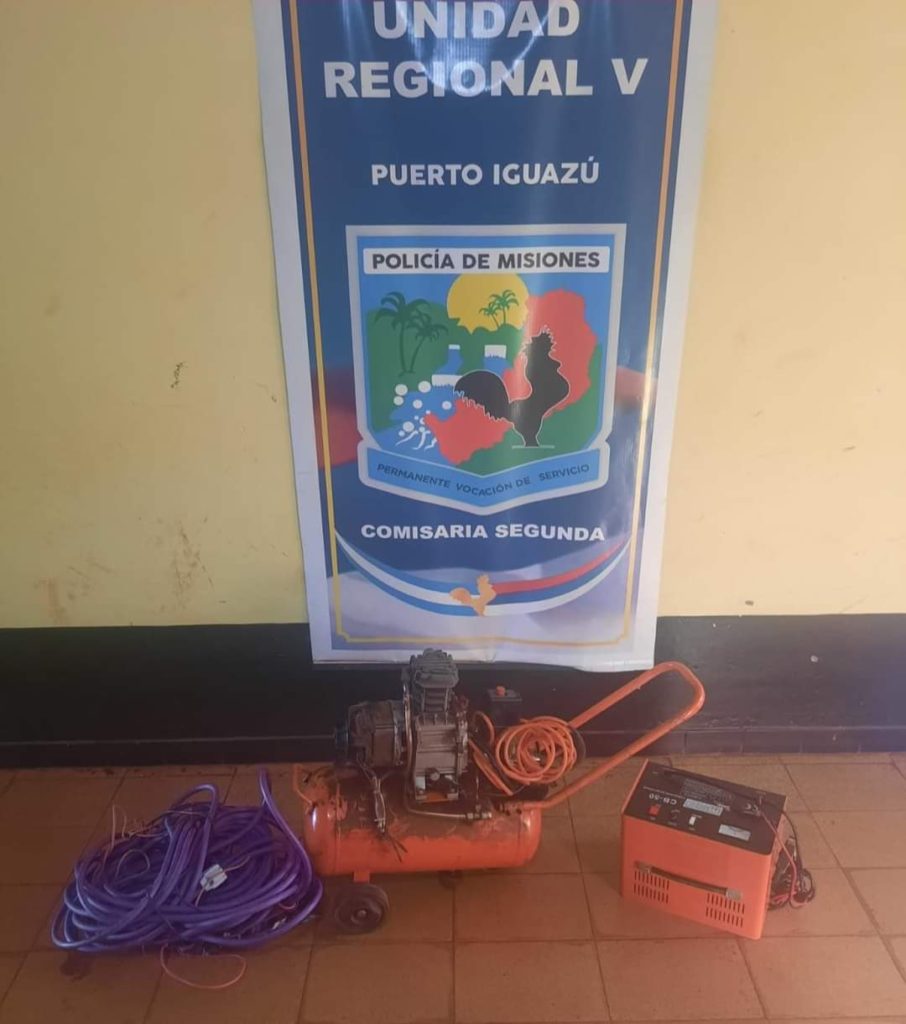 Pasaba minutos de las 06.30 de la mañana sobre la Calle Chacho Peñaloza efectivos de la comisaría seccional Segunda URV detuvieron a dos jovenes de 29 y 18 años de frondoso prontuario y en su poder incautaron un compresor color naranja, un cargador de batería industrial y un alargue.