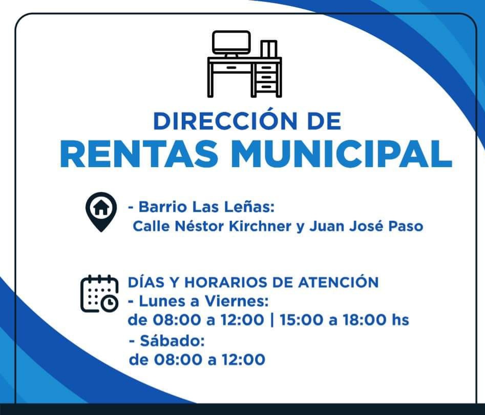 La Municipalidad a través de la Dirección Municipal de Rentas informa nuevos horarios de atención al público de sus distintos puestos de cobranzas, con el objetivo de ofrecer un servicio descentralizado para estar más cerca de los vecinos.