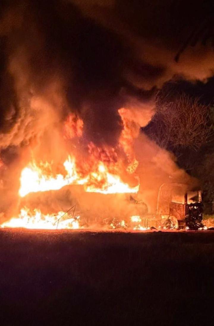 Se trató de un camión cisterna de 28 mil litros de combustible derivado del petróleo tipo gas oil en estos momentos en combustión libre circunscripto, más una casilla de tipo de control, un acoplado cargado de 20 a 30 tanques de almacenamiento de combustible de mil litros.