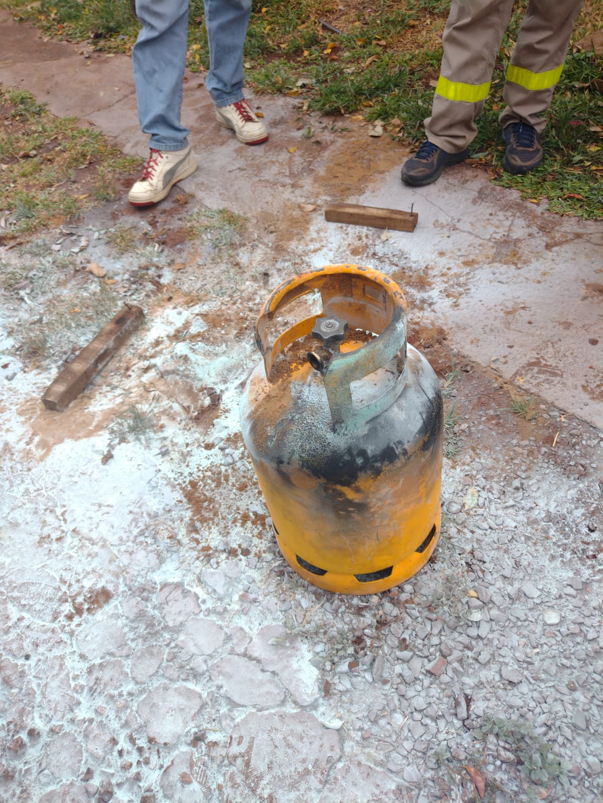 Bomberos al llegar al lugar hace el cierre de garrafa que aún se encontraba con pérdidas y sin llamas ya que pudieron apagar con extintor