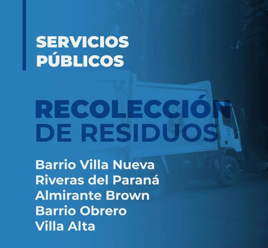 Desde la Municipalidad a través de la Dirección Municipal de Servicios Públicos informan que a partir de mañana, por desperfectos técnicos, los vehículos recolectores de basura no estarán realizando el recorrido regular en los siguientes Barrios:
