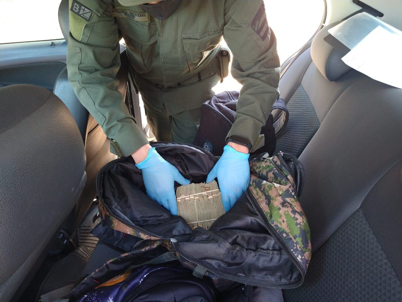 Al llevar a cabo el registro del rodado, los funcionarios detectaron dos mochilas en el asiento trasero que contenían fajos de billetes de moneda nacional de curso legal. Personal de la Fuerza contabilizó el dinero hallado, el cual arrojó un total de 5.498.500 pesos argentinos (en billetes de 500 pesos).