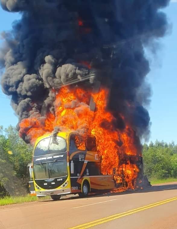 Este martes en horas de la mañana un micro de la empresa Crucero del Norte se incendió sobre la ruta nacional 12, ocasionando momentos de suma tensión a los pasajeros que afortunadamente escaparon del siniestro, sin sufrir lesiones.