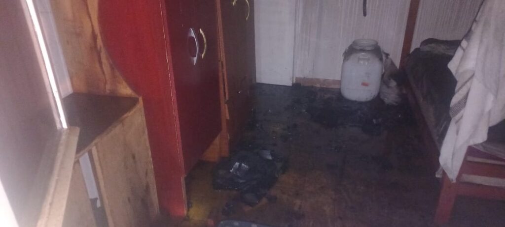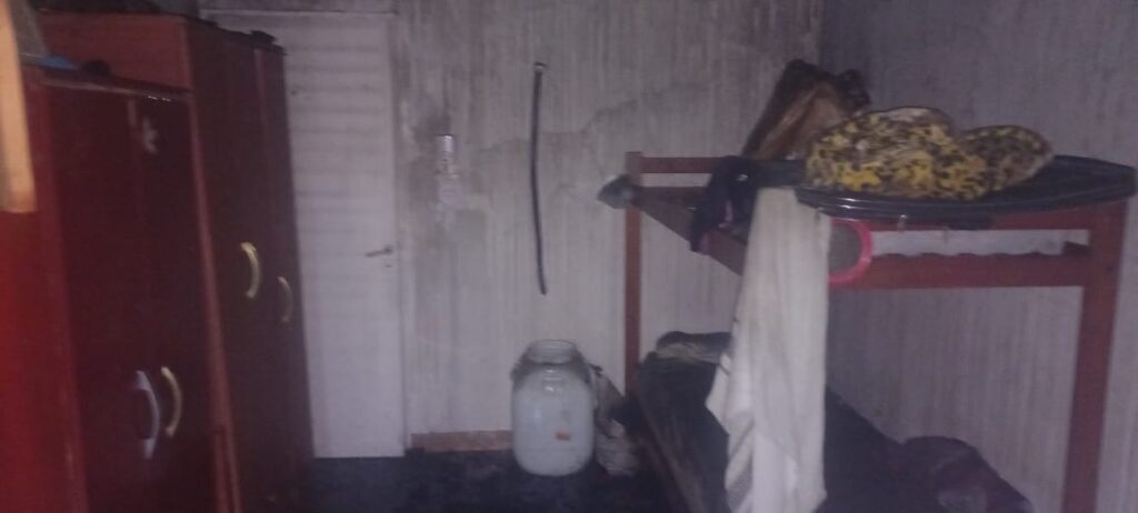 Sale tres móviles de Bomberos hacia el lugar , al llegar se observa un incendio en una guardia de Guardaparque Provincial, el fuego se originó en la parte de atrás, donde se encontraba un Garaje y por el cielorrazo se propaga hacia el interior de la estructura de aproximadamente 5×4 con dos habitaciones, baño y sala.