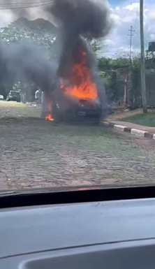 En horas del mediodía, la Guardia de Bomberos Voluntarios de Puerto Iguazú fue alertada sobre un incendio vehicular ocurrido sobre la calle Irupé, en el barrio Santa Rosa.