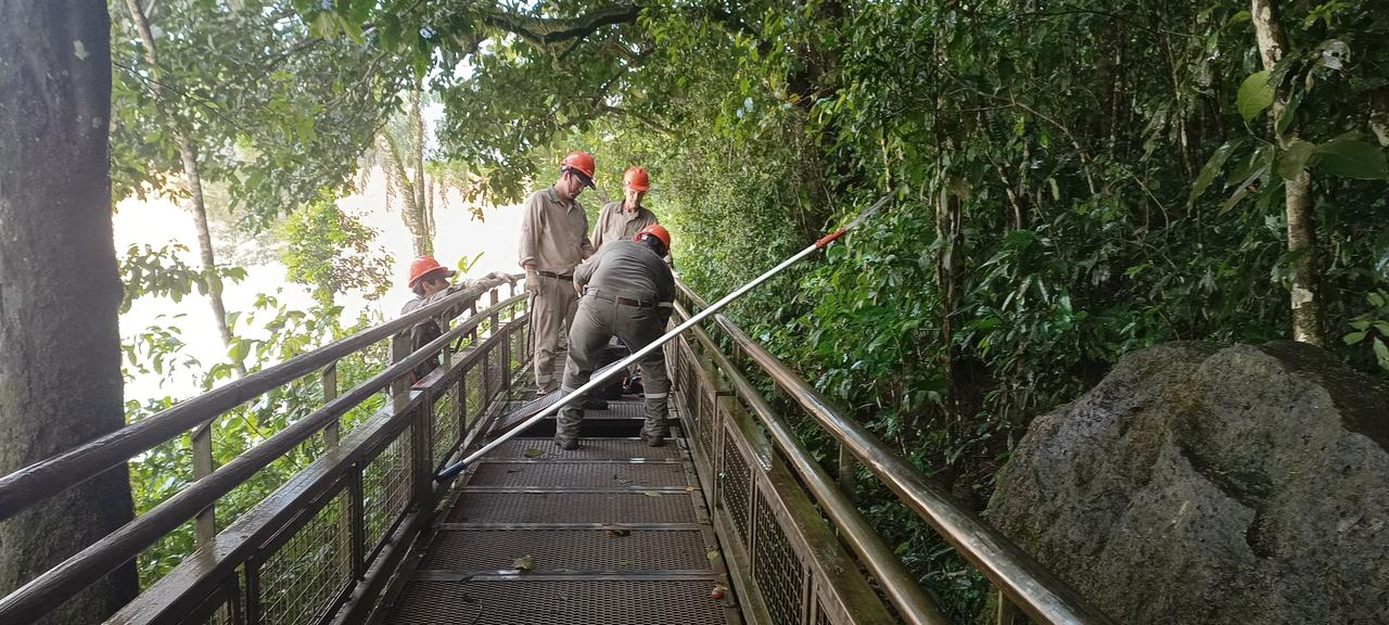 El personal del Parque Nacional Iguazú y la concesionaria continúan trabajando para poner en condiciones los circuitos y pasarelas lo antes posible, con el objetivo de que turistas de todo el mundo puedan visitar las Cataratas del Iguazú en su máximo esplendor.
