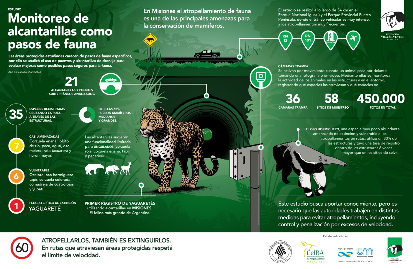 El atropellamiento de animales en las rutas es una problemática que amenaza la biodiversidad. Sin embargo, un reciente estudio realizado por la Fundación Vida Silvestre, el Instituto de Biología Subtropical, el Centro de Investigaciones del Bosque Atlántico (CeIBA) y Parques Nacionales ha revelado una solución innovadora: adaptar alcantarillas y puentes para que funcionen como seguros corredores biológicos.