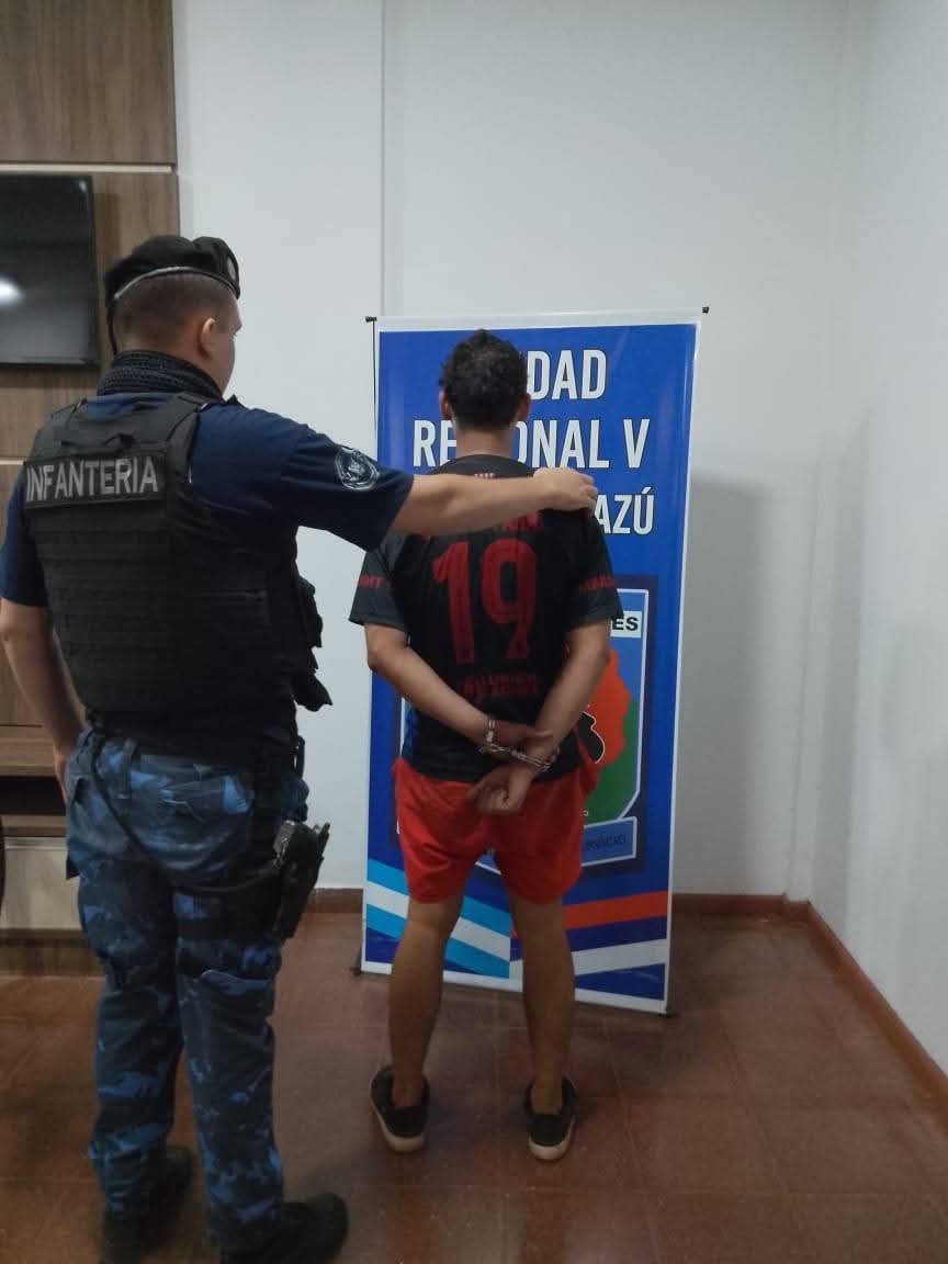 Un joven de 19 años, identificado como Franco G., fue detenido esta madrugada en Puerto Iguazú después de ser sorprendido robando una motocicleta. El hecho ocurrió alrededor de las 2:00 am en la avenida Tres Fronteras, cuando una comisión policial patrullaba la zona y fue alertada por un transeúnte que vio al joven escapando con la motocicleta.