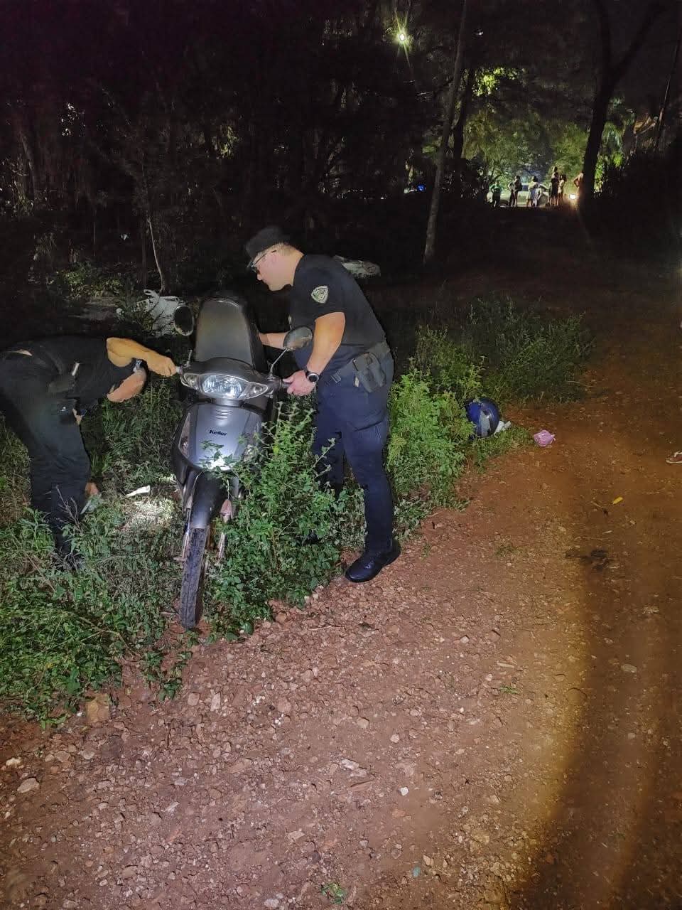 La policía realizó un rastrillaje en la zona con la colaboración de residentes y encontró la motocicleta marca Corven de 110 c.c. oculta en un «Trillo» junto con dos cascos. Posteriormente, otros efectivos de la División Infantería arrestaron al joven a pocos metros del lugar.
