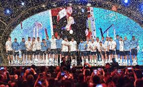 Luego, continuaron las condecoraciones para los miembros del plantel argentino y en grupos de a cuatro fueron subiendo al escenario, presentados por hinchas caracterizados que han dejado su huella en Qatar 2022.