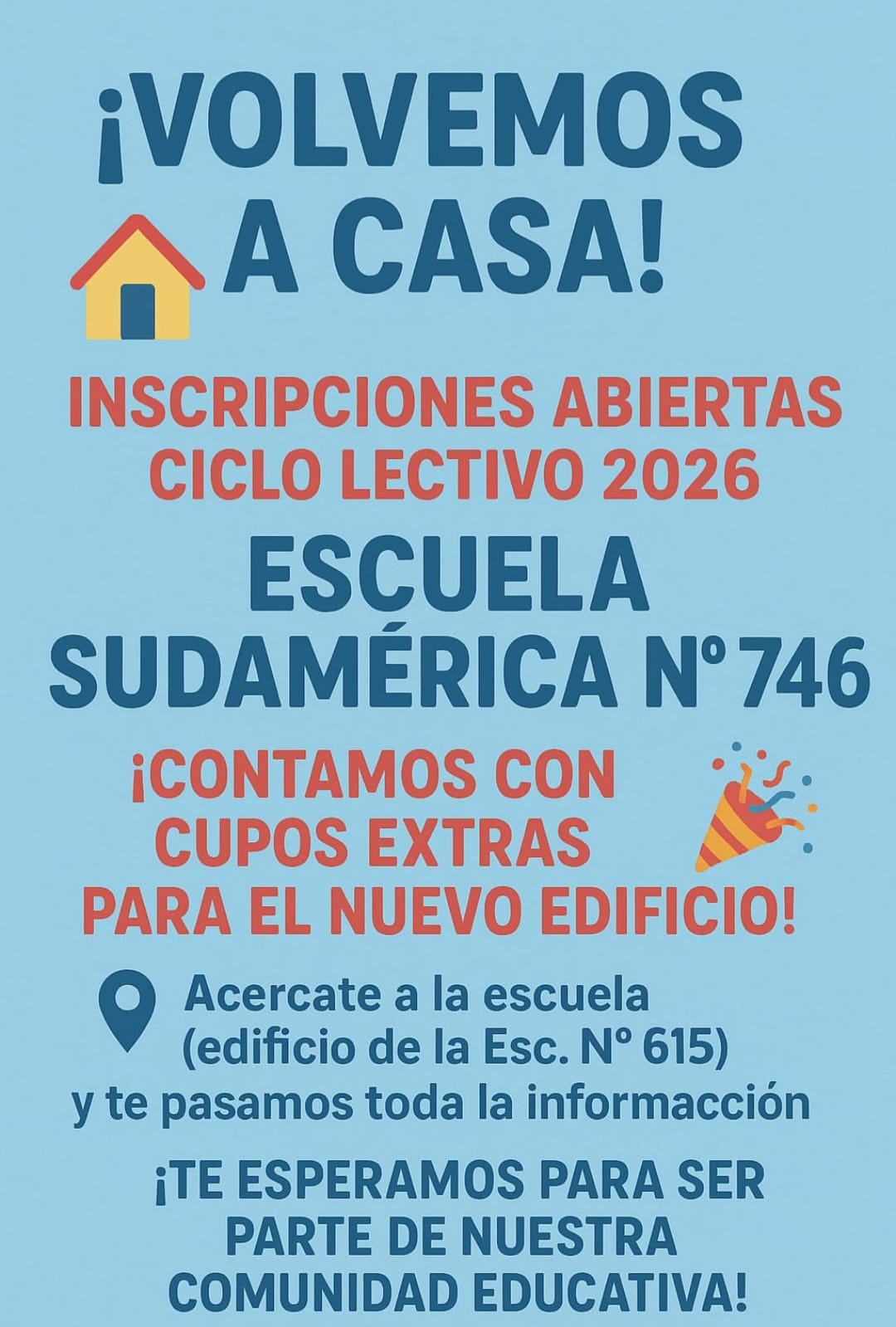La institución ya inició el proceso de inscripciones para el ciclo lectivo 2026, desde primer grado hasta séptimo grado, destinadas tanto a los alumnos que actualmente cursan en la sede de la Escuela N.º 615 —que les brindó espacio durante todos estos años—, como también a nuevos ingresantes.