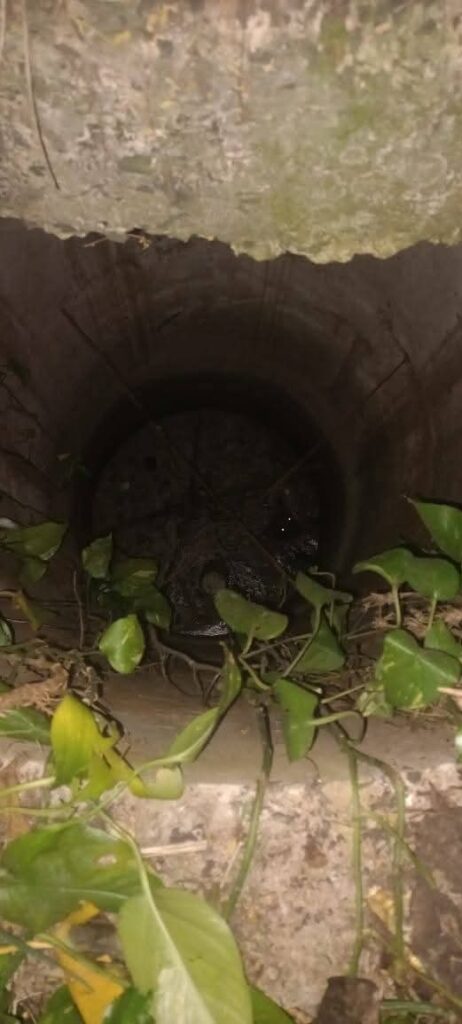 El procedimiento se dio cerca de las 4 horas, cuando la patrulla circulaba por la intersección de las calles Perito Moreno y Bertoni. Allí, un hombre de 49 años alegó que se escuchaban ladridos desde un pozo que se encontraba a pocos metros.