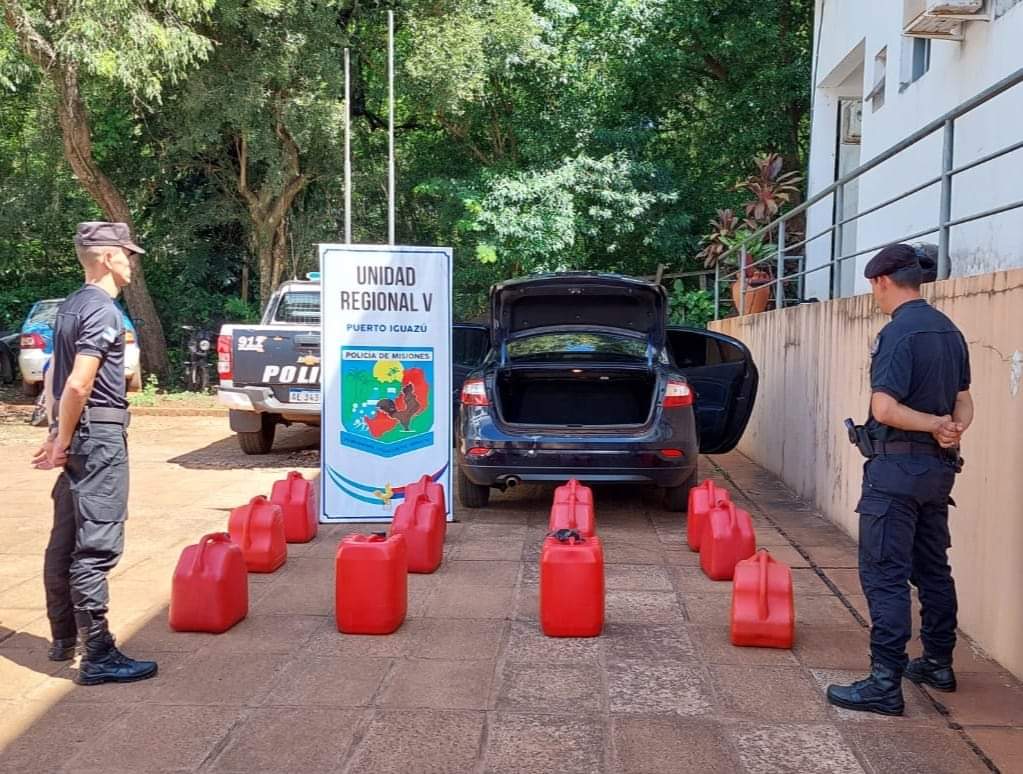 El procedimiento se realizó circunstancias en que los agentes de la División Comando Radioeléctrico URV realizaban patrullajes motorizados cuando divisaron al rodado y al solicitarle al conductor que se detenga, se visualizo que transportaba varios bidones.
