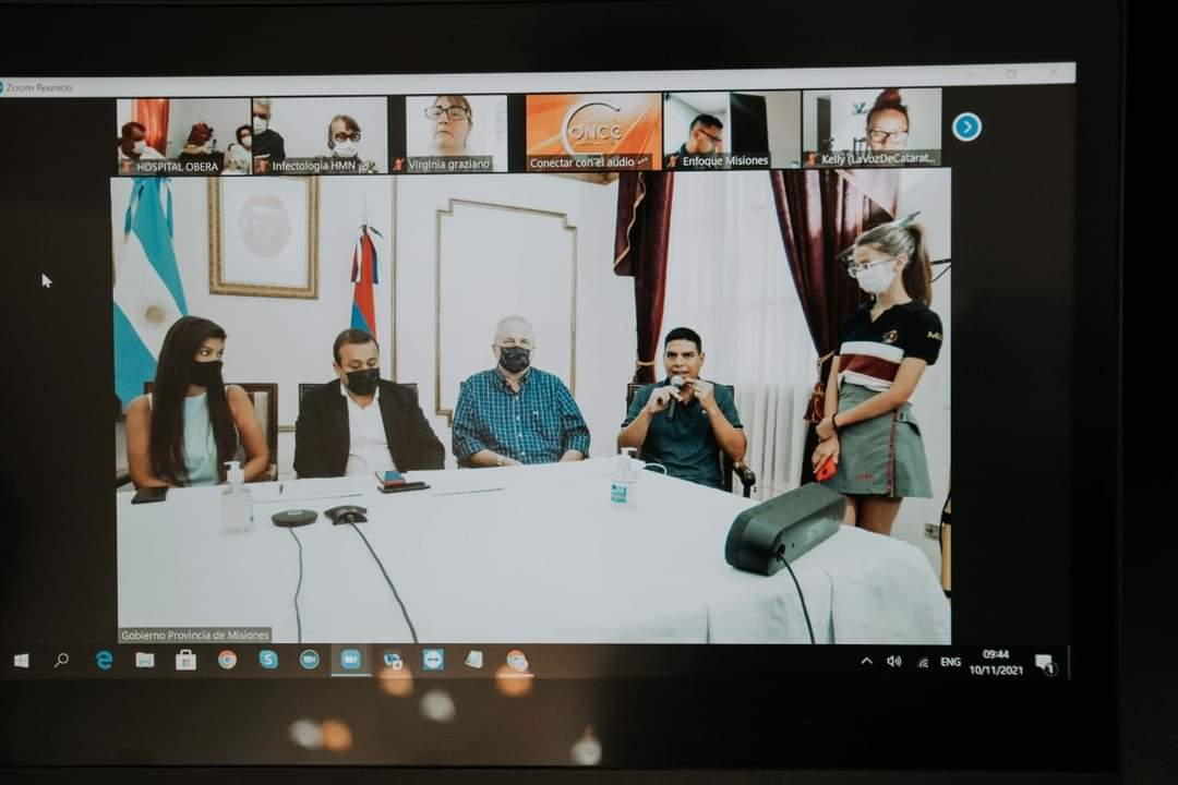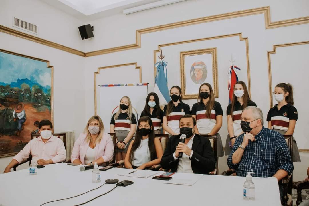 En la misma conferencia, el Gobernador presentó a un grupo de alumnas del último año del Instituto San Basilio Magno que desarrollaron cuatro proyectos socioeducativos con gran potencial para el uso de la comunidad. Previamente, el funcionario ya los había conocido, le fueron presentados por las estudiantes en la Sala de Situación del Ministerio de Gobierno, donde hubo incluso demostración en vivo.