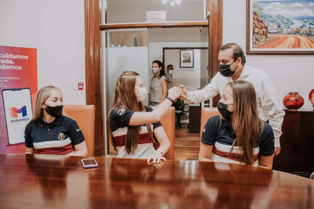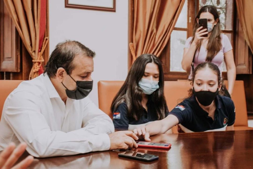 En esta reunión, fue acompañado por el ministro de Gobierno, Marcelo Pérez y la rectora del Instituto Santa María, Sonia Rojas Decut. Estuvieron también la docente a cargo de los proyectos, Karina Pasamán, junto a las alumnas Milagros Mekekuk, Valentina Benítez, Paloma Irrazabal, Sofía Ramírez, Guadalupe Hoffman, y Giana Morero.