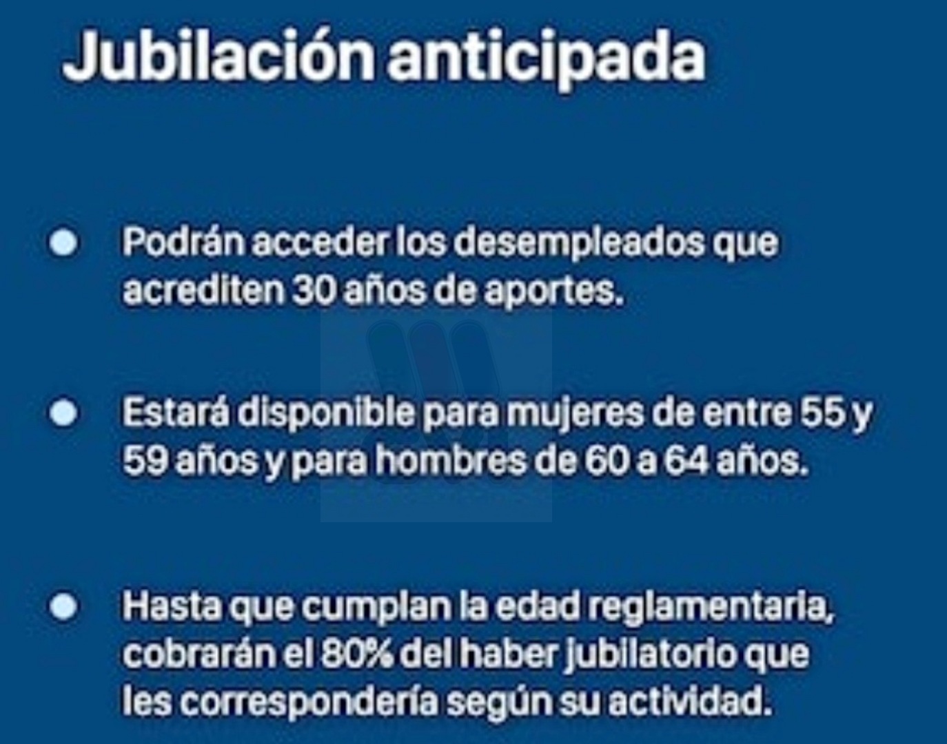 Aquellos que accedan a jubilarse de manera anticipada, recibirán una prestación mensual equivalente al 80% del haber que le correspondería al momento de alcanzar la edad requerida.