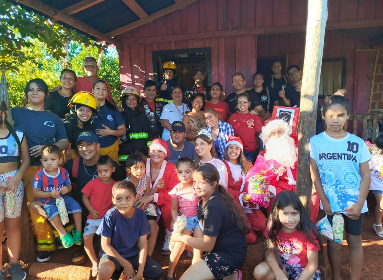 Fueron invitados por el grupo «Un Corazón Solidario», que los acompañó en un recorrido por la ciudad de Puerto Esperanza, buscando a los más pequeños para sorprenderlos con sus regalos.