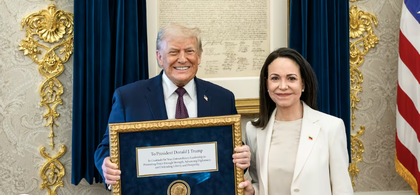 Durante el encuentro, Machado le obsequió a Trump la medalla de su Premio Nobel de la Paz como símbolo de reconocimiento a su labor internacional. Trump se lo agradeció públicamente.