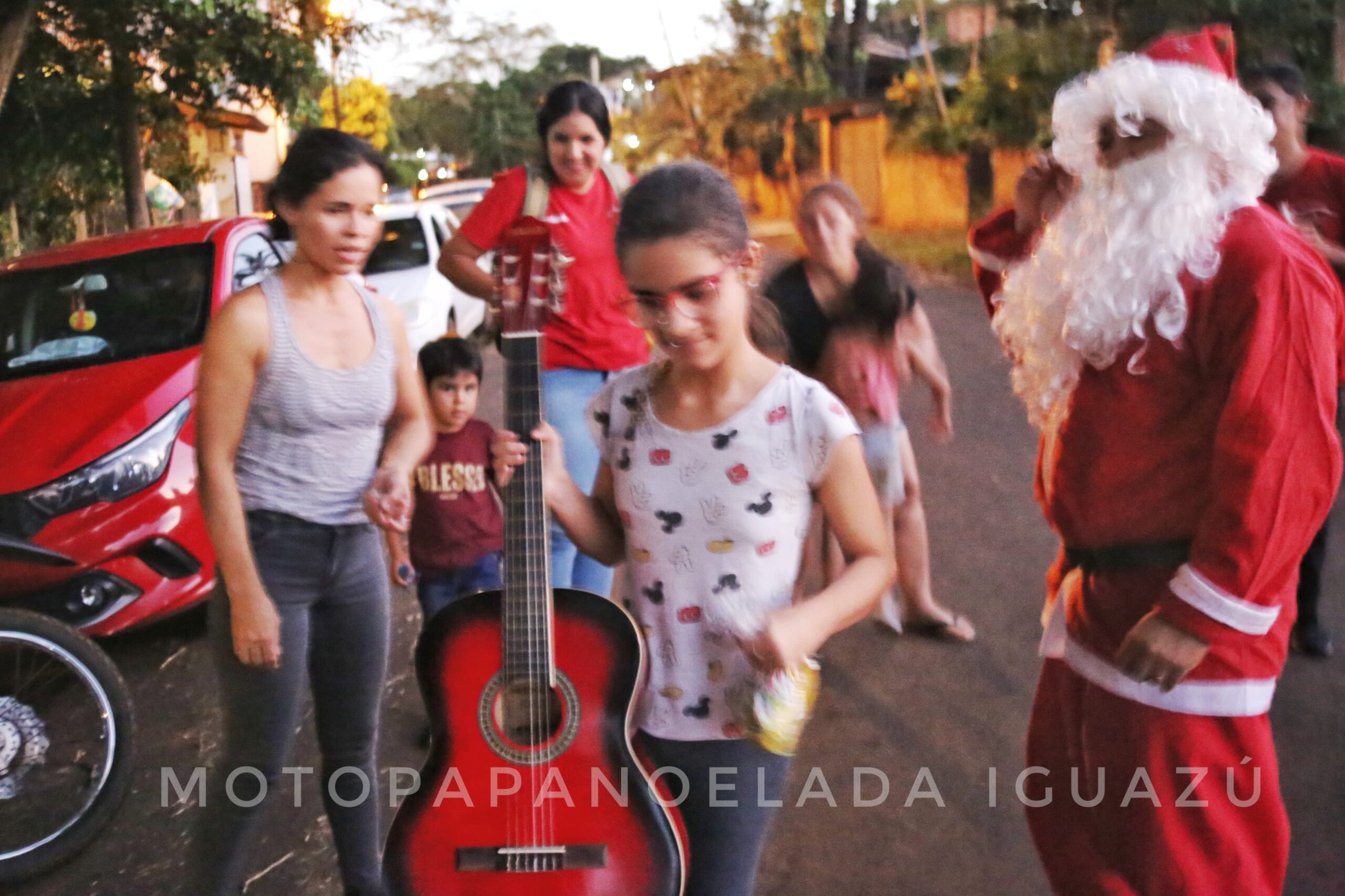 En la tarde de hoy miércoles 27 de diciembre todo, después de una ardúa búsqueda, el equipo de la Motopapanoleada junto a Papa Noel se acercaron hasta el domicilio de Rosario para cumplirle el sueño y realizar la entrega de la guitarra, además de repartir golosinas.