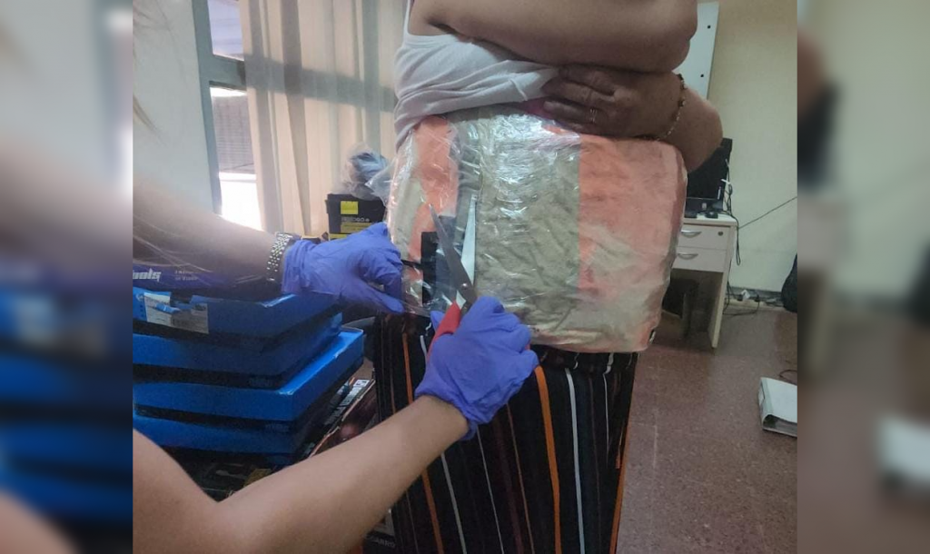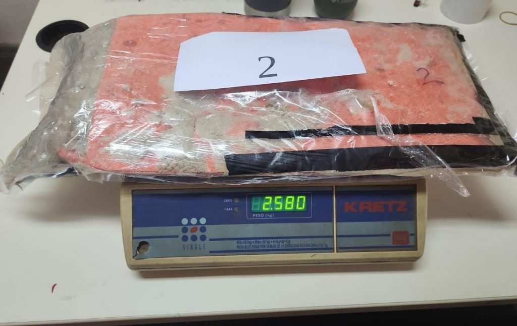 Fue en esa instancia que los agentes intervinientes detectaron que la mujer llevaba una especie de faja sobre su abdomen y cuando realizaron una requisa en profundidad constataron que trasladaba dos paquetes de cocaína que alcanzaron un pesaje total de 5,060 gramos.