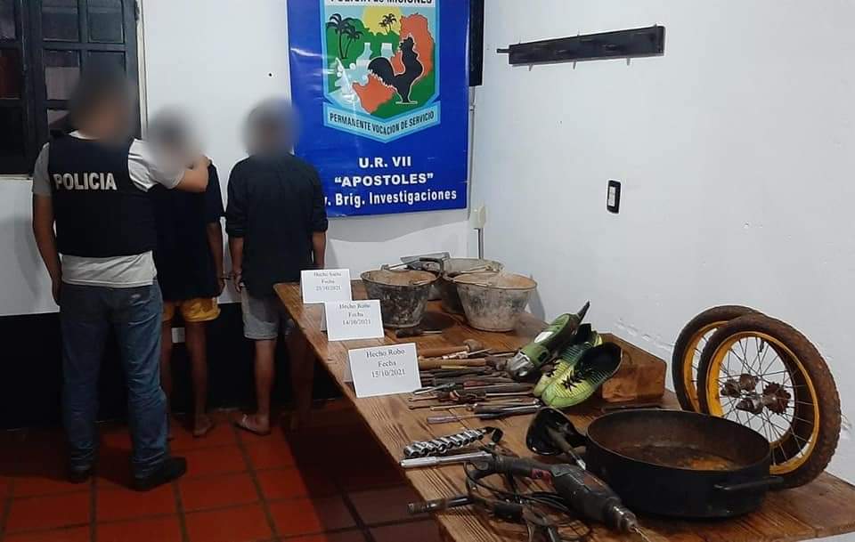 Por otra parte, en Apóstoles, los investigadores de la Unidad Regional VII, recuperaron un sinfín de herramientas y elementos, que fueron sustraídos a vecinos de los barrios Chezny, 25 de Mayo y San Jorge. Entre estos, martillos, tenazas, baldes de albañilería, palas, un taladro, una amoladora y otros objetos de valor. Como así también, fueron detenidos dos jóvenes de 19 años, sobre quienes recaen sospechas.