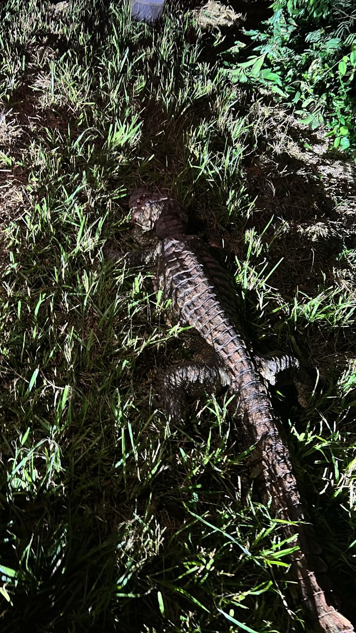 Entre las 23:30 y las 00:00 horas de anoche, un yacaré fue atropellado en la ruta 101, en las inmediaciones de los tótems de velocidad instalados para la prevención de este tipo de incidentes.