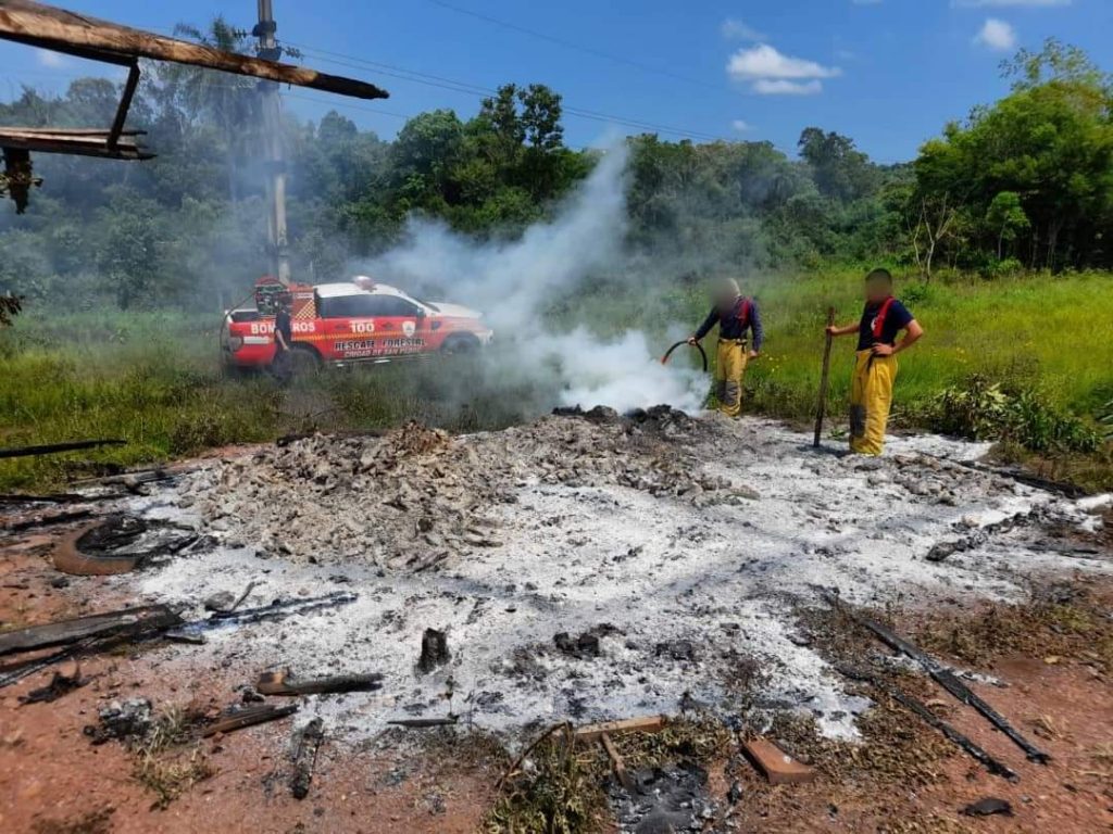 Un vecino de la zona se acercó a la dependencia policial e informó a los policías sobre el incendio. Ante esto, una patrulla se dirigió hasta el lugar, donde constató lo ocurrido y solicitó la colaboración de los bomberos voluntarios de Pozo Azul. En ese contexto, los uniformados notaron entre las llamas diferentes bultos rectangulares.