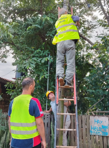 Ante el peligro de una posible descarga eléctrica, personal docente del colegio dio aviso inmediato a los Bomberos Voluntarios de Iguazú, quienes acudieron rápidamente al lugar. El equipo realizó tareas preventivas y procedió a aislar el área afectada para resguardar la seguridad de quienes transitan por la zona.