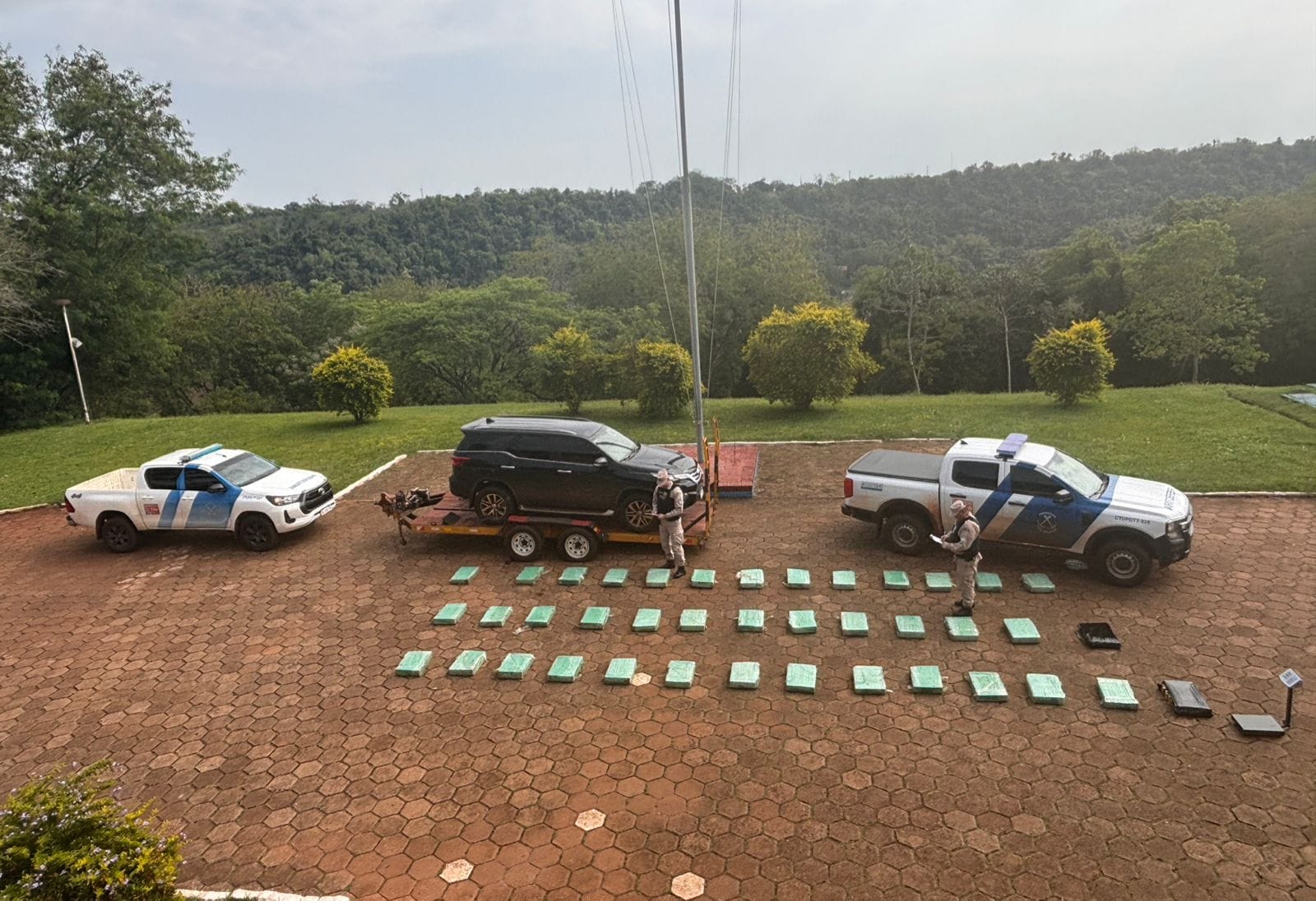 Tras la requisa, se confirmó que los paquetes contenían 541 panes rectangulares de droga con un peso total superior a los 491 kilos. Además, al verificar la camioneta, se constató que el número de chasis no coincidía con el dominio colocado, y que el vehículo tenía pedido de secuestro por robo en el estado de Río Grande do Sul, Brasil, desde el 21 de septiembre.