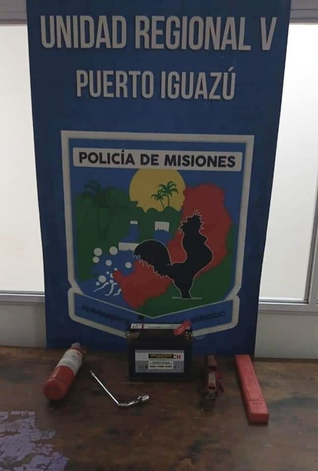 Un vecino constató que desconocidos, momentos antes, le sustrajeron la batería de su rodado alertó de la situación a los efectivos que se distribuyeron en distintos sectores y tras un rápido accionar, visualizaron a dos jóvenes que, a la voz de alto, arrojaron los elementos para darse a la fuga. En el lugar se procedió al secuestro de una batería, matafuego y equipo de auxilio los cuales posteriormente fueron reconocidos por el damnificado como de su propiedad.