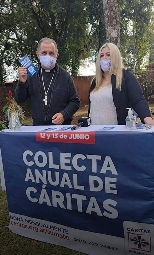Cáritas Diócesis de Iguazú desde el inicio de la pandemia hasta el día de la fecha entregó 122.400 kg de alimentos distribuidos en 7200 bolsones de aproximadamente 17 Kg cada uno y con la misma cantidad se entregó kit de limpieza e higiene personal. También realizó aportes registrando un total de $700.000 a pequeños productores y emprendedores que fueron destinados para la compra de herramientas e insumos.