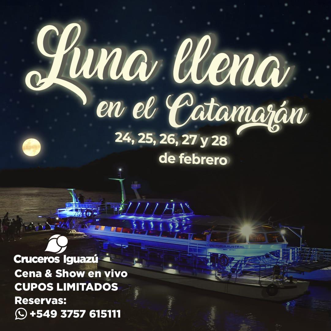 La navegación incluirá un momento especial deteniéndonos en silencio y a oscuras en la profundidad del río Iguazú inferior, para disfrutar la magestuosidad de la luna y la noche embarcados…