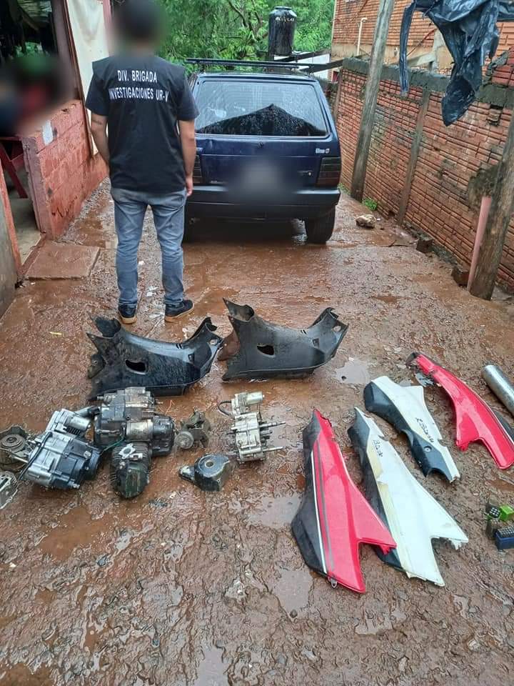 Simultáneamente, en otro inmueble del barrio Villa Alta que funcionaba como un taller mecánico, los investigadores incautaron un Fiat Uno, varias motopartes, y se hallaron herramientas y cuños utilizados presumiblemente para la remarcación de motores. Asimismo, detuvieron a un sospechoso de 46 años.