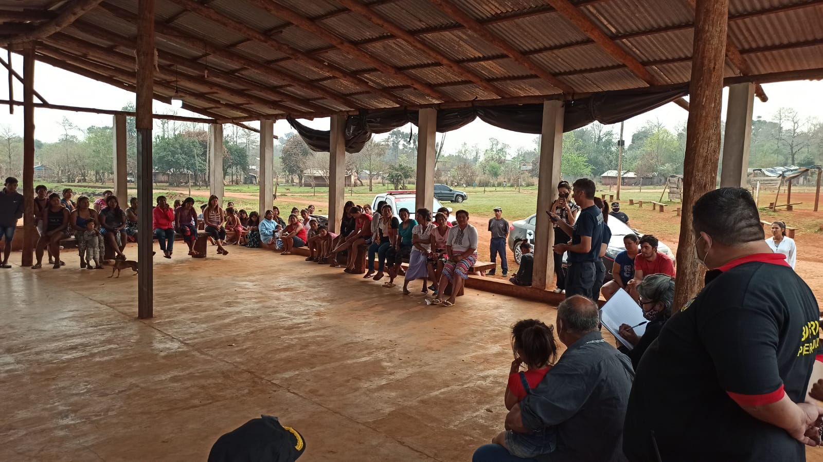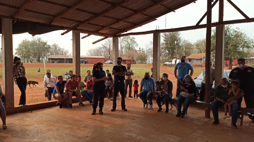 En la mañana de hoy, en el salón de usos múltiples de la Aldea ubicada en la zona de las 2000 hectáreas de esta ciudad, la policía junto al cuerpo activo de Bomberos voluntarios del municipio llegaron hasta la aldea Fortín Mbororé el marco de la ardua labor que llevan adelante institución y organismo.
