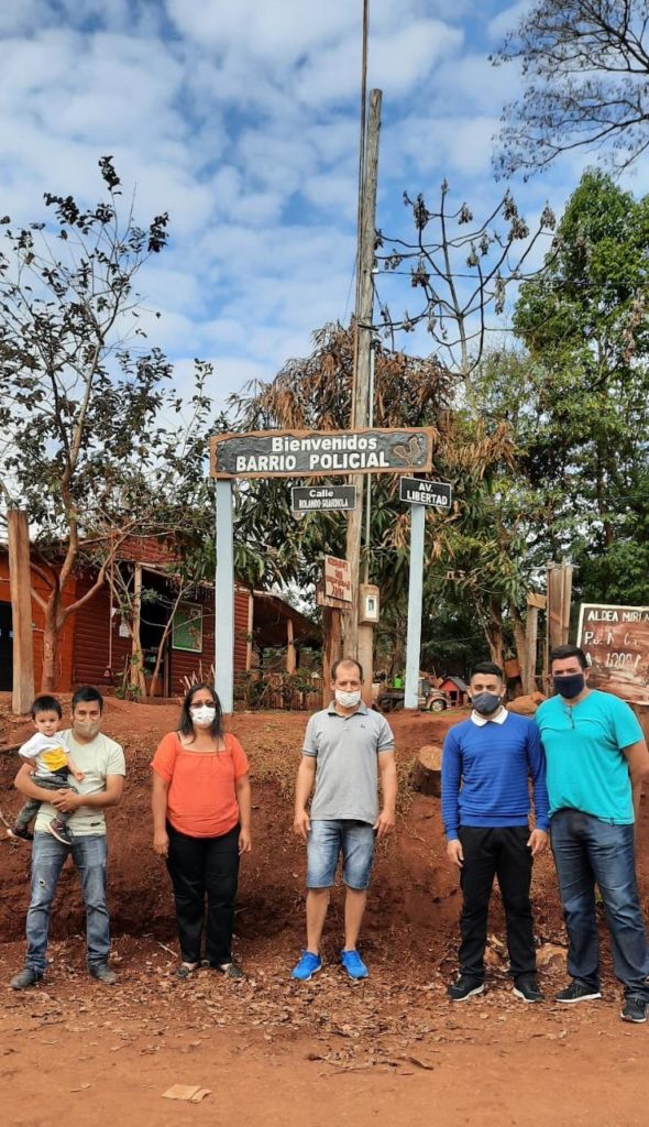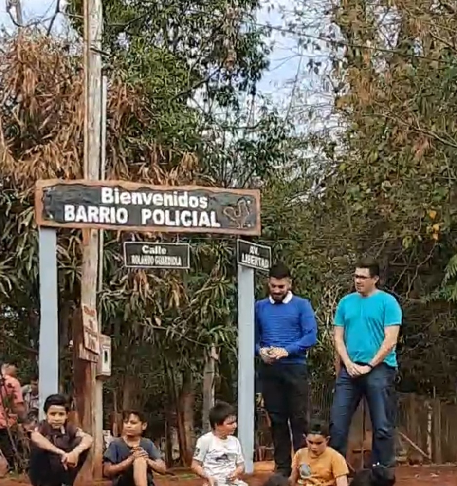 En un sencillo acto y con la presencia de la Comisión Barrial Pte. Mamani Julio Enrique, Vicepresidente Robledo Mirian Judith, Protesorero Cardozo Baez Oscar, se realizó el descubrimiento del cartel artesanal que lleva el nombre del barrio inaugurado, Barrio Policial.