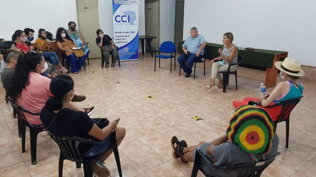 El jueves 03 de febrero en la Cámara de Comercio de Iguazú se realizo el encuentro con los trabajadores artesanos y emprendedores para informar sobre el trabajo de la venta de los productos regionales de Misiones en los aeropuertos de Posadas y Puerto Iguazú.