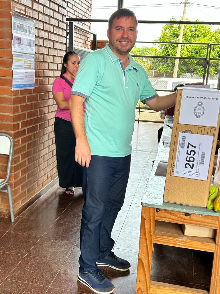 El Presidente del Iturem, Lic.Leopoldo Lucas y actual concejal electo, pasadas las 11 hs emitió su voto en Escuela Taratuty N°106, del Barrio 1°de Mayo.