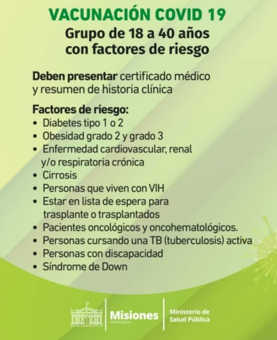 - Personas de 18 a 39 años con patologias de riesgo. Deben llevar certificado medico y resumen de Historia Clinica Segunda dosis: