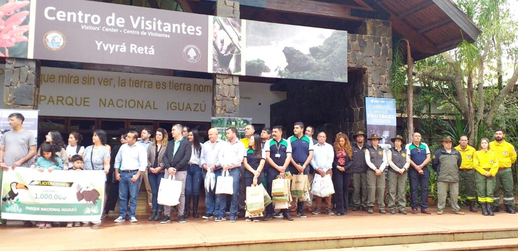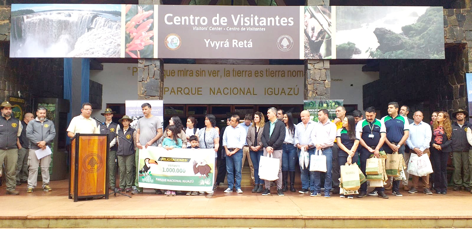 Esta mañana, el turista un millón ingresó al Parque Nacional Iguazú y fueron recibidos por el Gobernador de la provincia Oscar Herrera Ahuad, el Ministro de Turismo José María Arrúa, el Intendente municipal Claudio Raúl Filippa y el Intendente del Parque Nacional Iguazú, demás autoridades presentes tanto municipales como asi también distintas instituciones – quienes hicieron entrega de los premios ante presencia de la prensa local y provincial – el ticket un millón al jefe de la familia Barreto y demás premios para disfrutar juntos en familia.