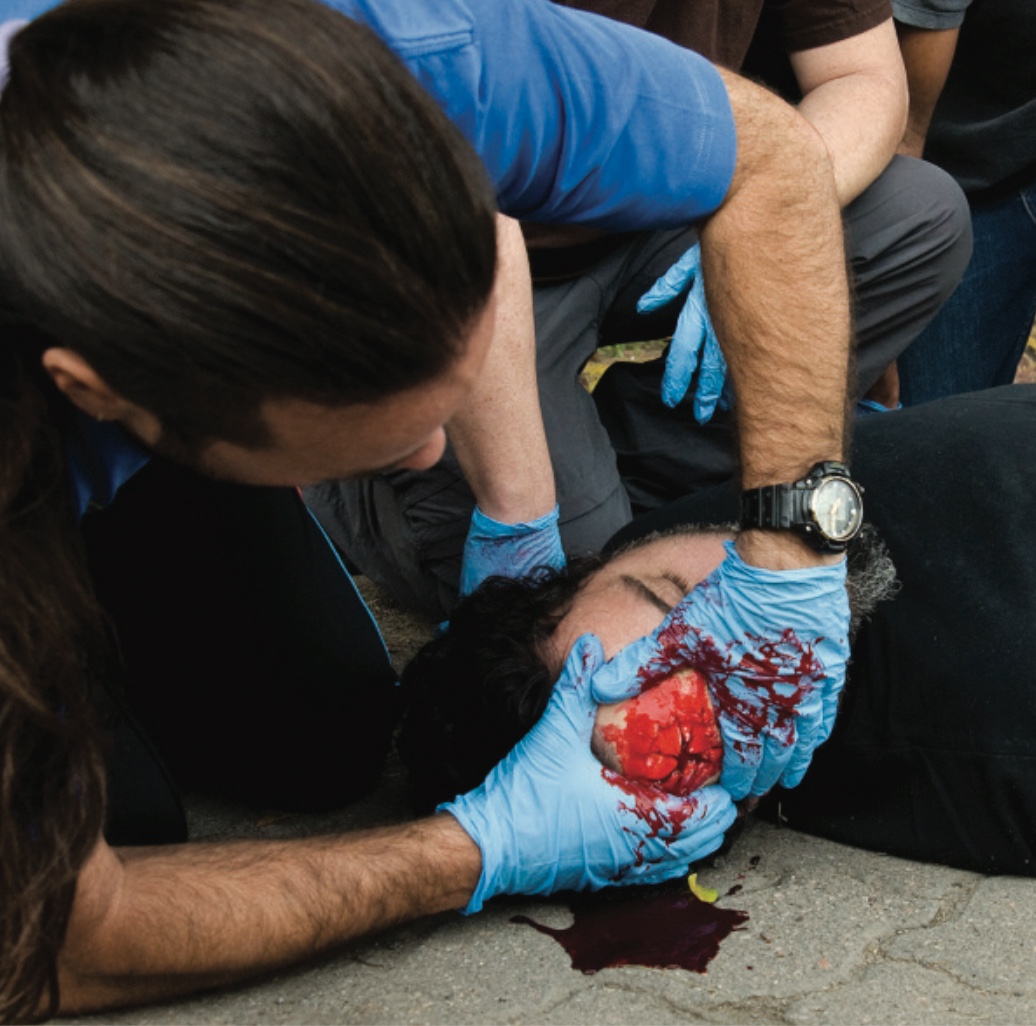 En caso de heridas en la cabeza, se puede colocar un apósito limpio en la herida para detener el sangrado. Si se produce un sangrado nasal, se debe colocar a la persona boca abajo y apretar ambas fosas nasales durante un tiempo prolongado.